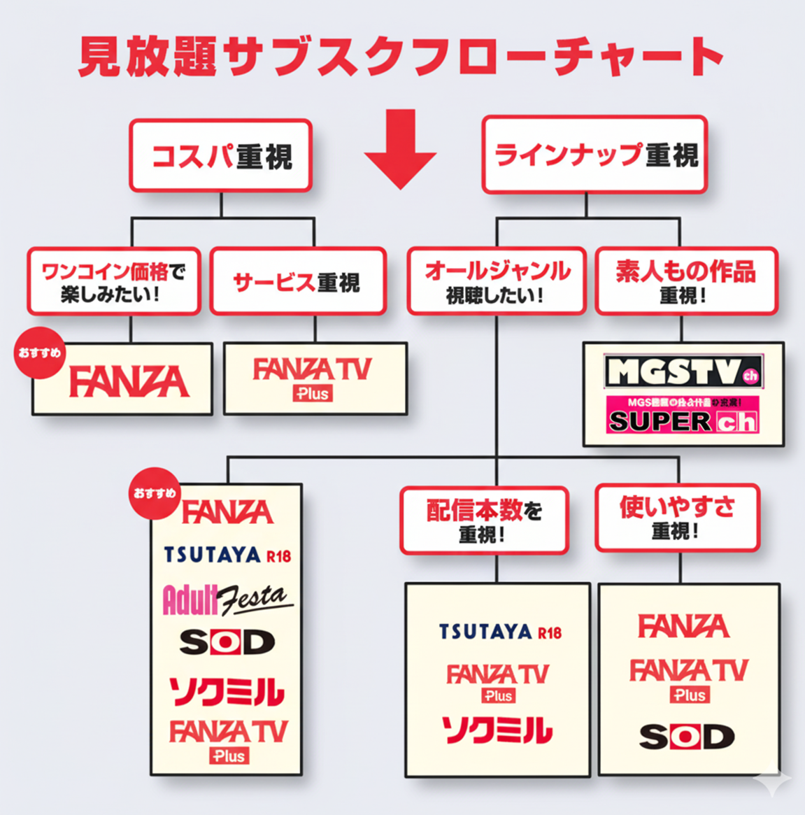 大人向けの動画サービス、多すぎてどれ選べばいいのかわかんないにゃん…。